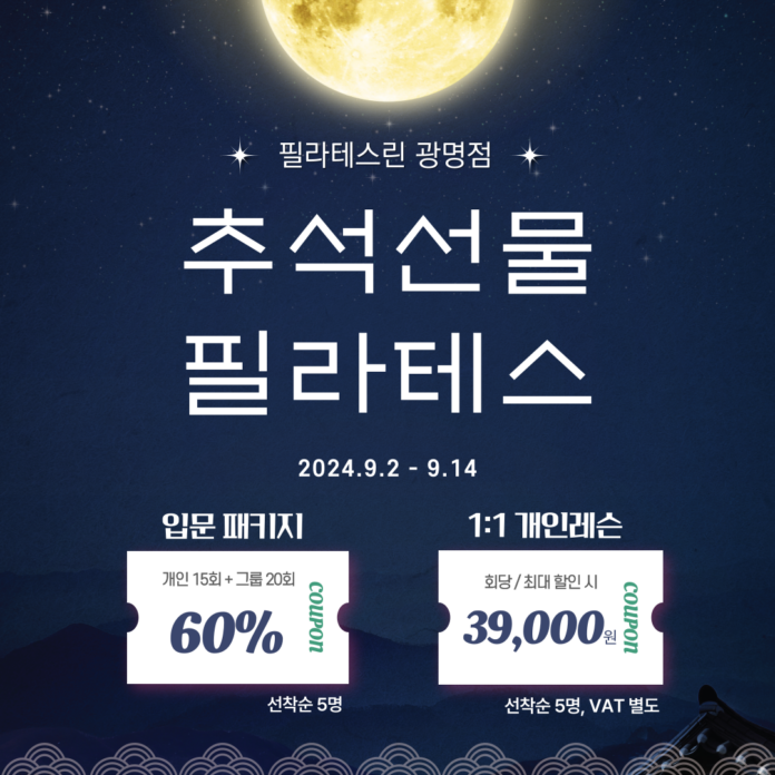 필라테스린 광명점이 민족 대명절 추석을 맞아 최대 60% 할인 이벤트를 진행한다.