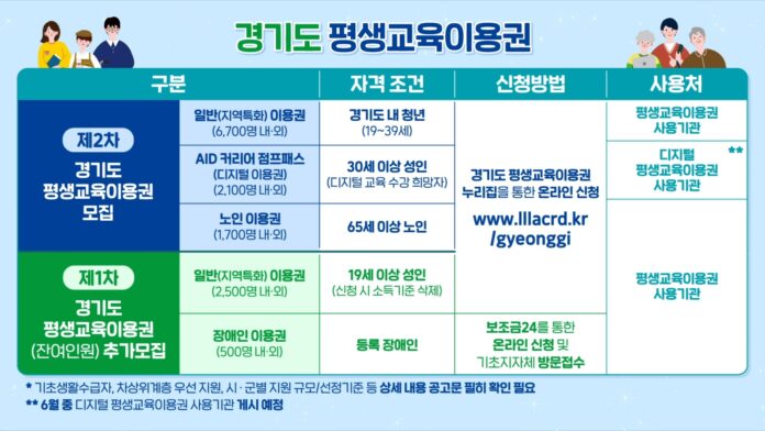 경기도와 경기도평생교육진흥원이 오는 7월 10일까지 ‘2025년 제2차 경기도 평생교육이용권’ 신청 접수를 시작한다고 26일 밝혔다.