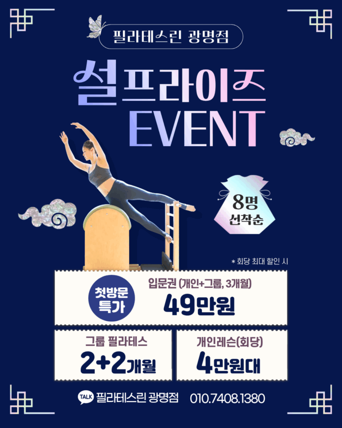 필라테스린 광명점이 민족대명절 설 연휴를 맞아 한해 운동을 가성비 있게 설계할 수 있는 ‘설프라이즈 이벤트’를 진행한다.