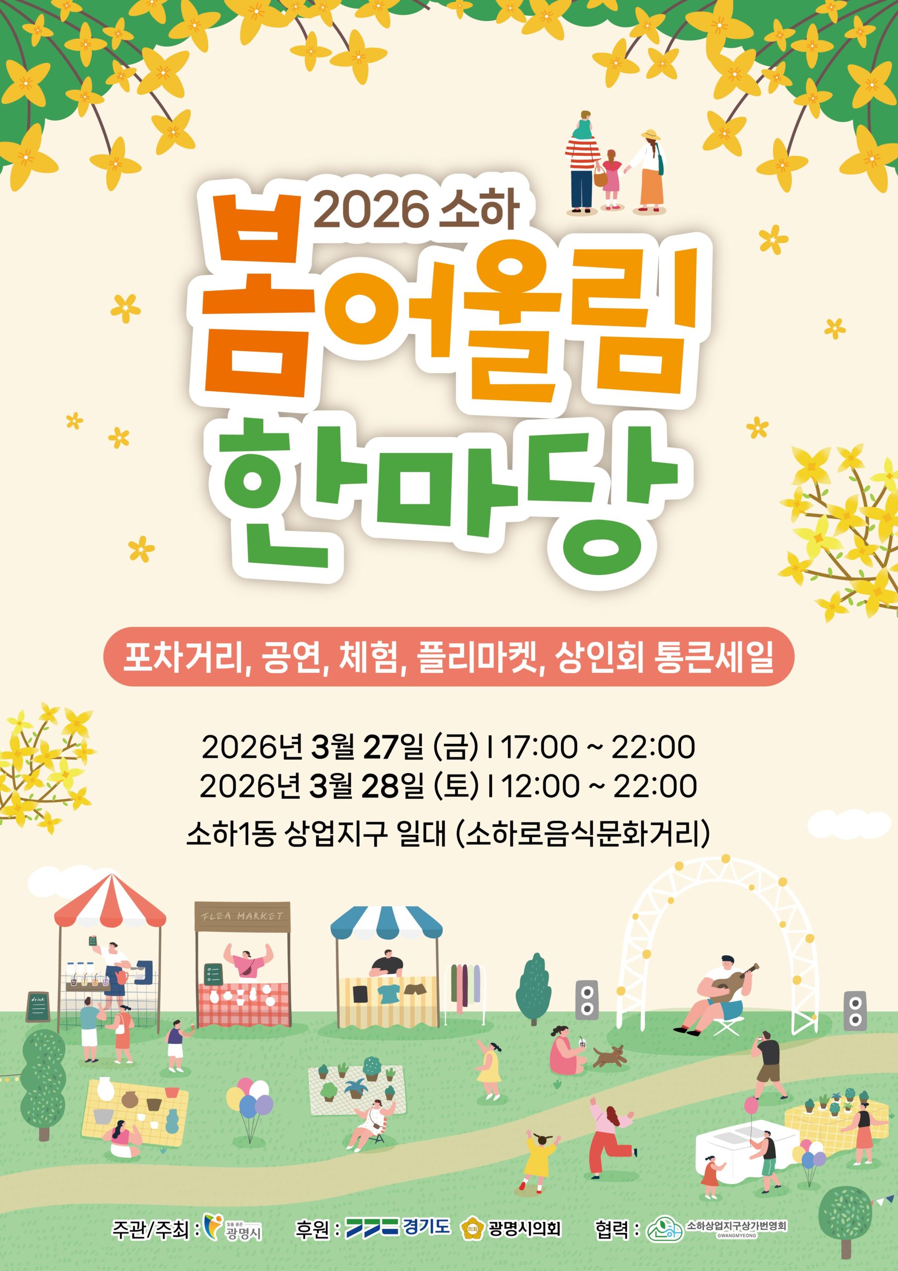 광명시가 오는 27일부터 28일까지 소하1동 소하로음식문화거리에서 ‘2026 소하 봄어울림 한마당’ 축제를 개최한다고 20일 밝혔다.